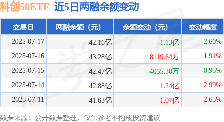 本站消息,7月17日,科创50ETF(588000)融资买入6.39亿元,融资偿还7.5亿元,融资净卖出1.11亿元,融资余额42.05亿元。